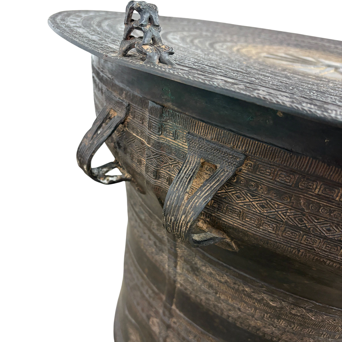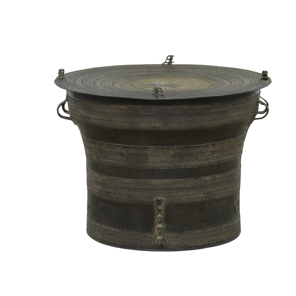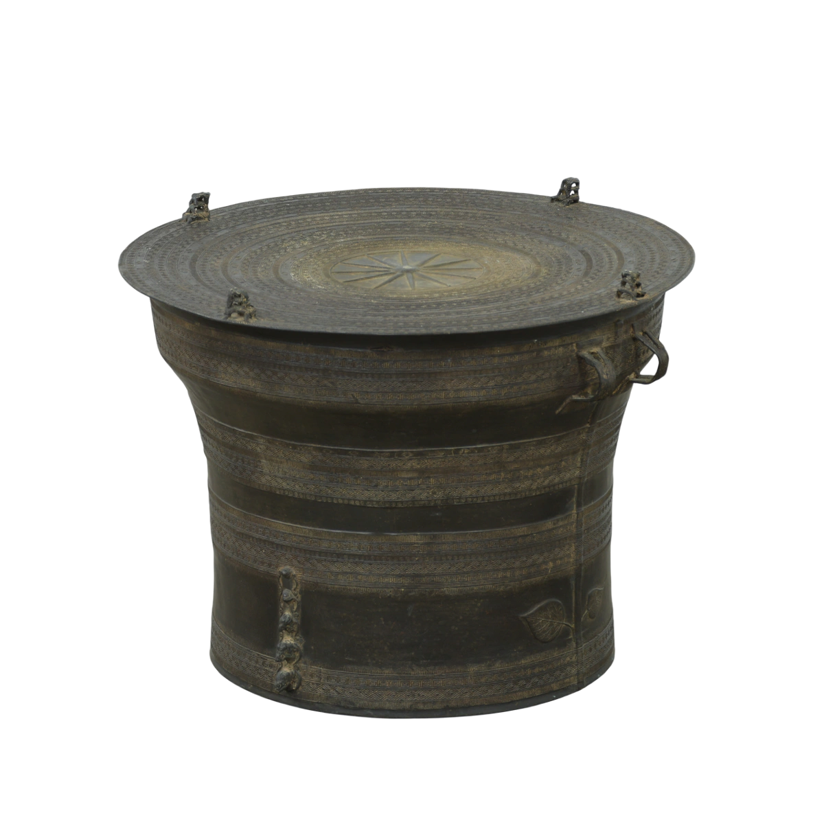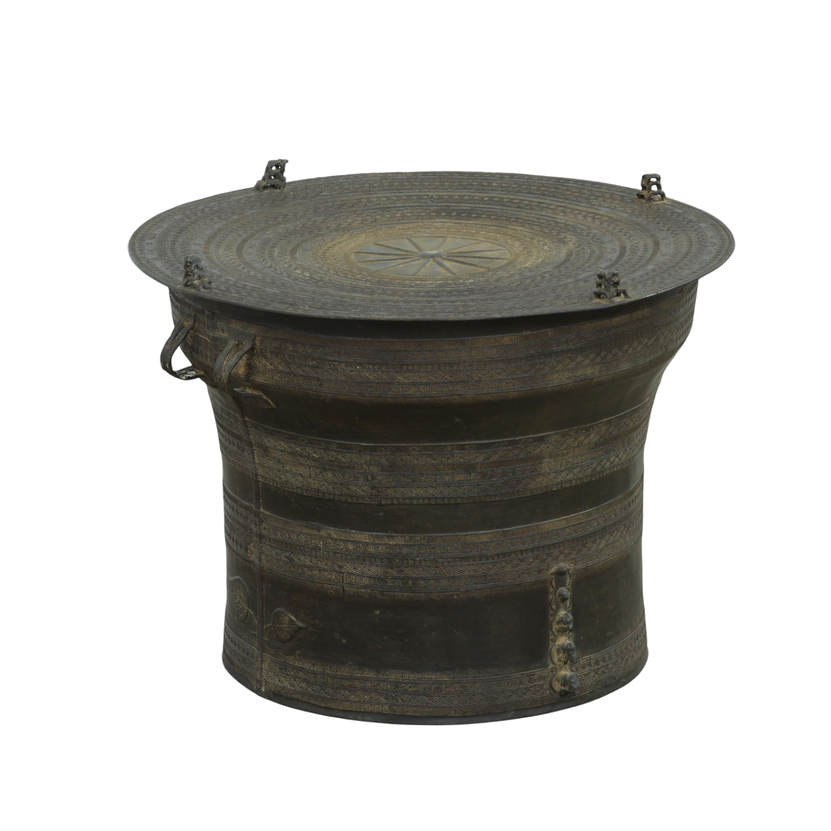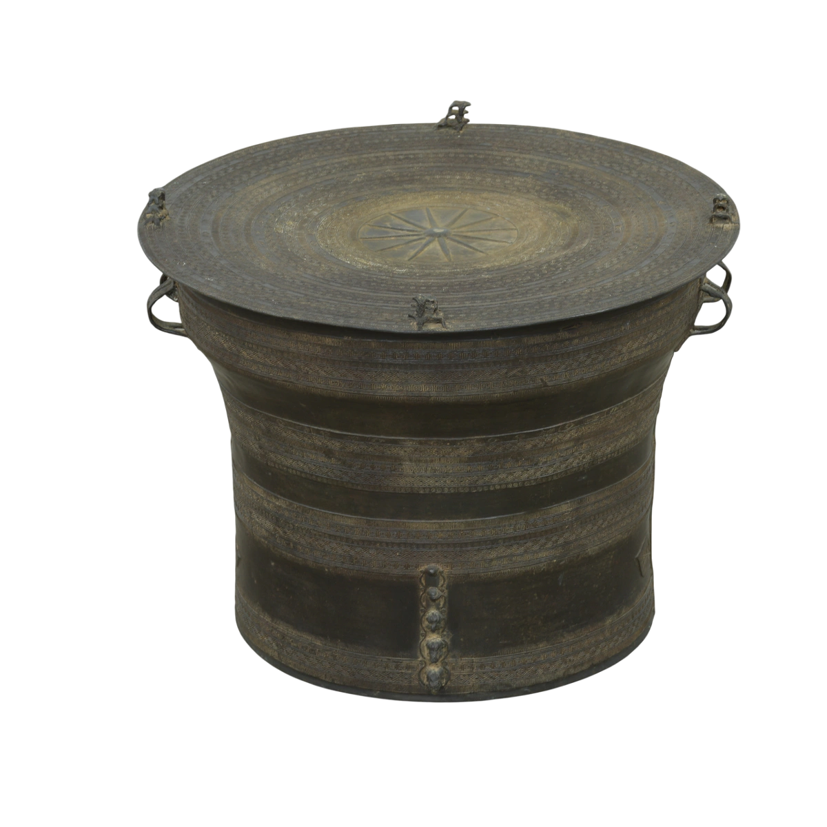 Antique Burmese 1900s Rain Drum Cast Bronze Coffee Table